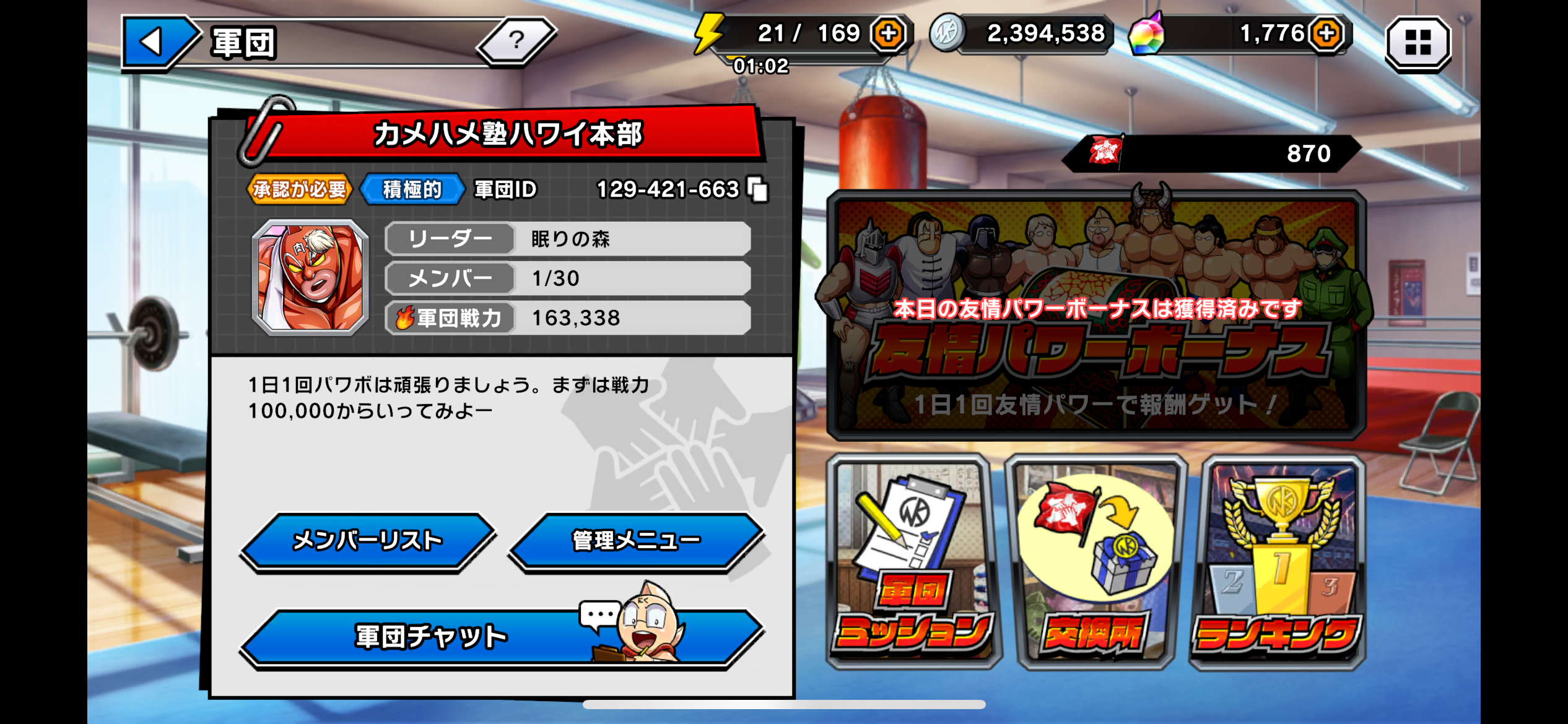 軍団名 マッスル極魂 軍団ID 525-821-873 軍団ランキング 最高6位
